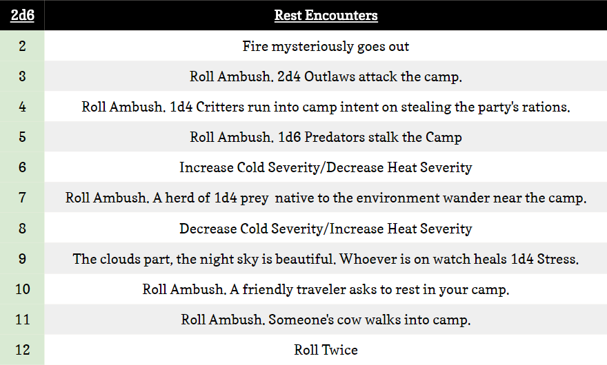 Additionally for GMs, all environments, biomes, and weather statistics are meant to simplistic but still add a meaningful challenge to the game.