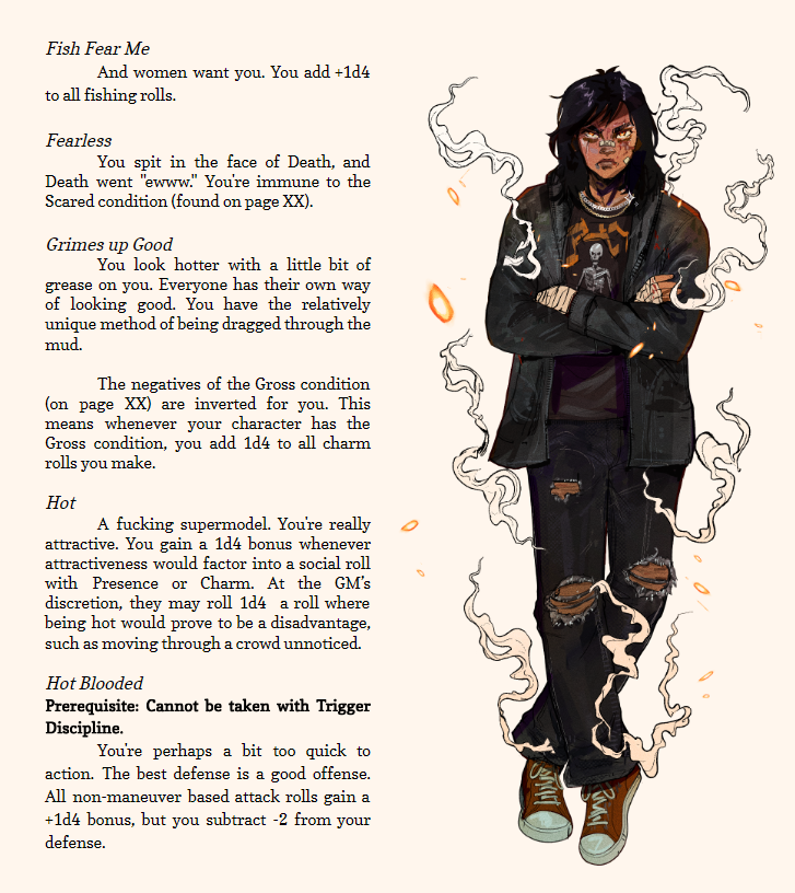 The best part though has to be character customization. Its very easy to make a wide variety of characters with the different bonds, edges, spells, and psionic talents at each character's disposal. You can make some really weird characters out there, from sentient shapeshifting gloop, to a reverse weredog, to fucking Skeletor, there's rules for all that and those are just the bonds. And with the XP being a point buy system, you can pivot your character to do something entirely different if you want to so long as you have the points for it. Even making NPCs has been surprisingly fun, though I wish there were a few more guidelines for making custom NPCs.
